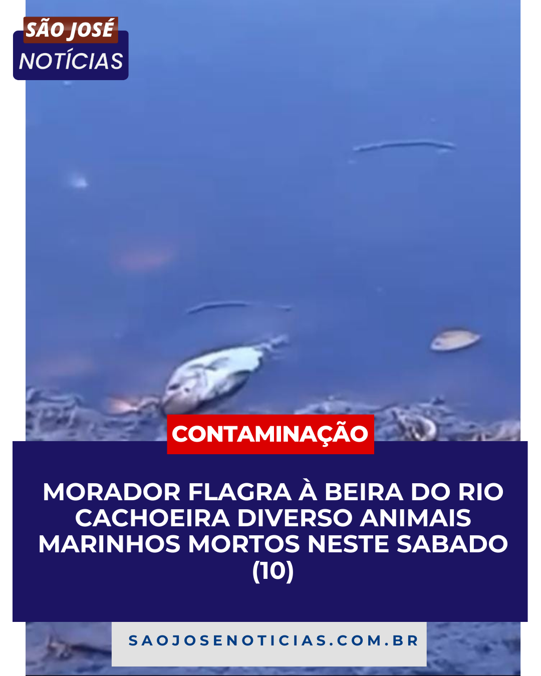 O registro feito pelo morador mostra peixes, siris, caramurus e outras espécies sem vida na beira do rio, próximo à localidade. A situação chama atenção pela quantidade e diversidade dos animais afetados.