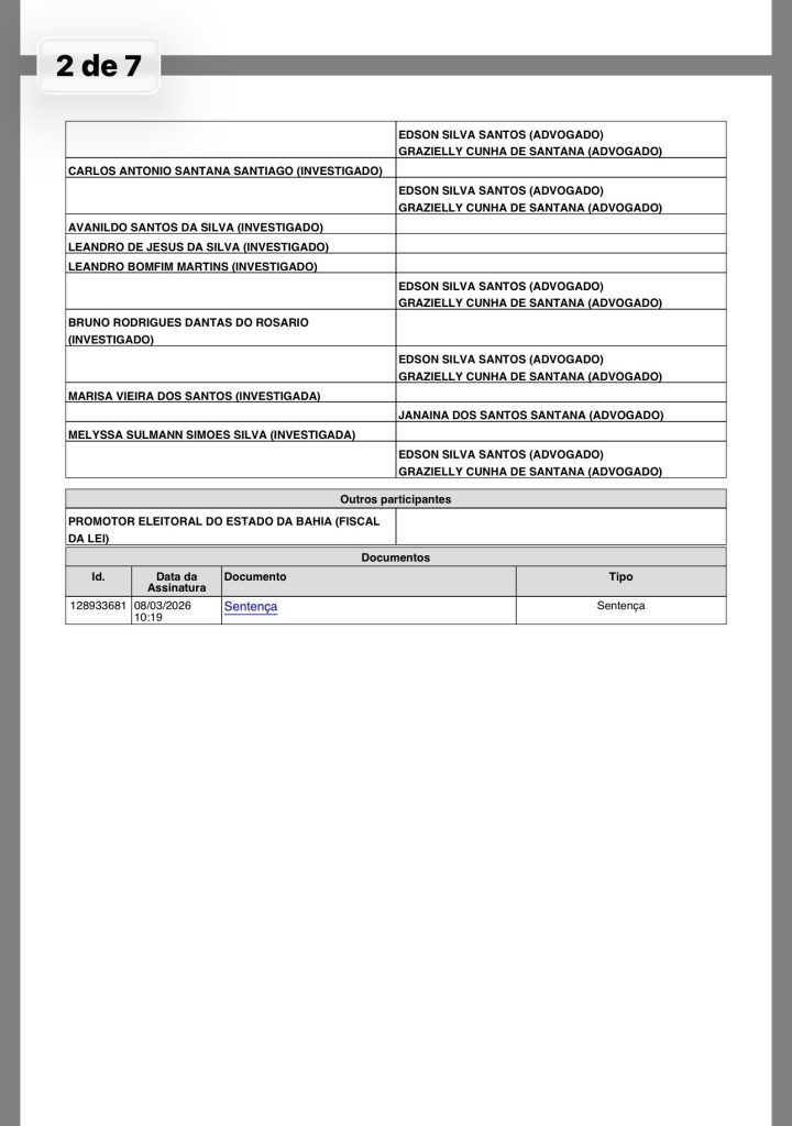 Além disso, foi determinada a inelegibilidade por oito anos do presidente do partido em Ilhéus, Bruno Rodrigues Dantas do Rosário, e das duas candidatas envolvidas.