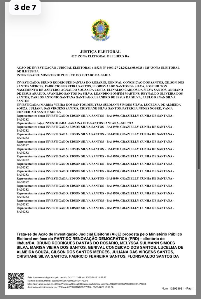 A Justiça Eleitoral em Ilhéus julgou procedente uma ação que apontou fraude à cota de gênero nas eleições municipais de 2024 e determinou a anulação de todos os votos do Partido Renovação Democrática (PRD) para vereador. A decisão também prevê a cassação dos registros e diplomas de todos os candidatos da legenda.