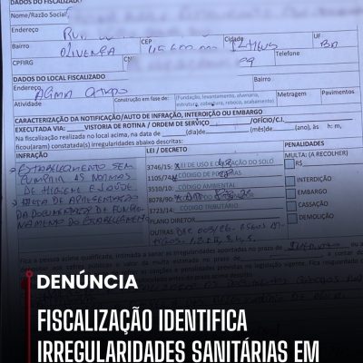 Uma ação de fiscalização realizada pela Secretaria Municipal de Ordem Pública (SEMOP), por meio da Fiscalização de Posturas, identificou irregularidades sanitárias em um bar e