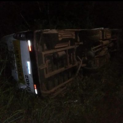 Ônibus escolar tombou na estrada vicinal de Maria Jape na noite desta sexta-feira, 29 de Março.