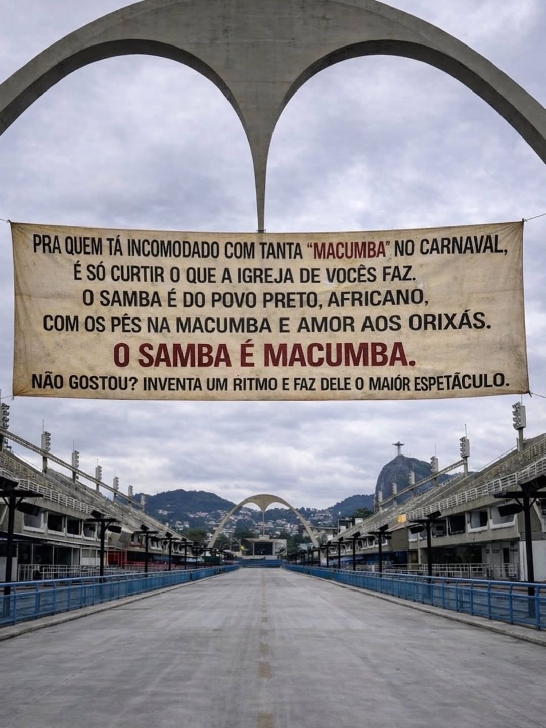Uma faixa estendida na Marquês de Sapucaí, no Rio de Janeiro, chamou atenção nas redes sociais ao trazer uma mensagem…
