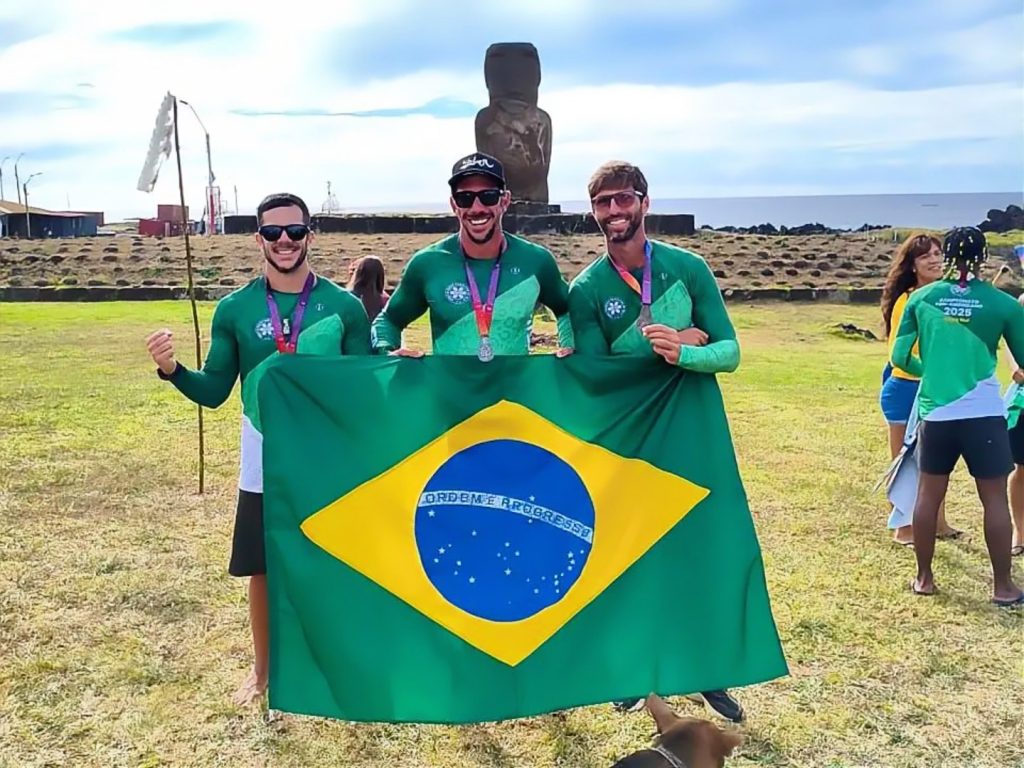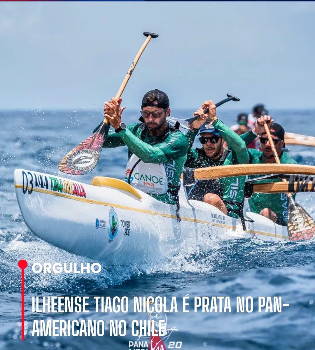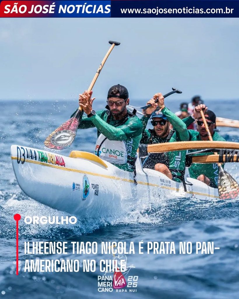 A Prefeitura de Ilhéus, através da Secretaria de Juventude, Esporte e Lazer, celebra a conquista do atleta ilheense Tiago Nicola Lavoura, que garantiu a medalha de prata no Pan-Americano de Canoagem Va’a 2025, realizado em Rapanui, no Chile, no último dia 21. Tiago competiu na categoria V3 Master 40 (canoa de três lugares), ao lado dos atletas Rafael Maia e Guilherme Santiago, alcançando o segundo lugar no pódio. O ilheense também obteve um excelente desempenho na categoria V1 Master 40 (canoa individual), conquistando a 5ª colocação.
