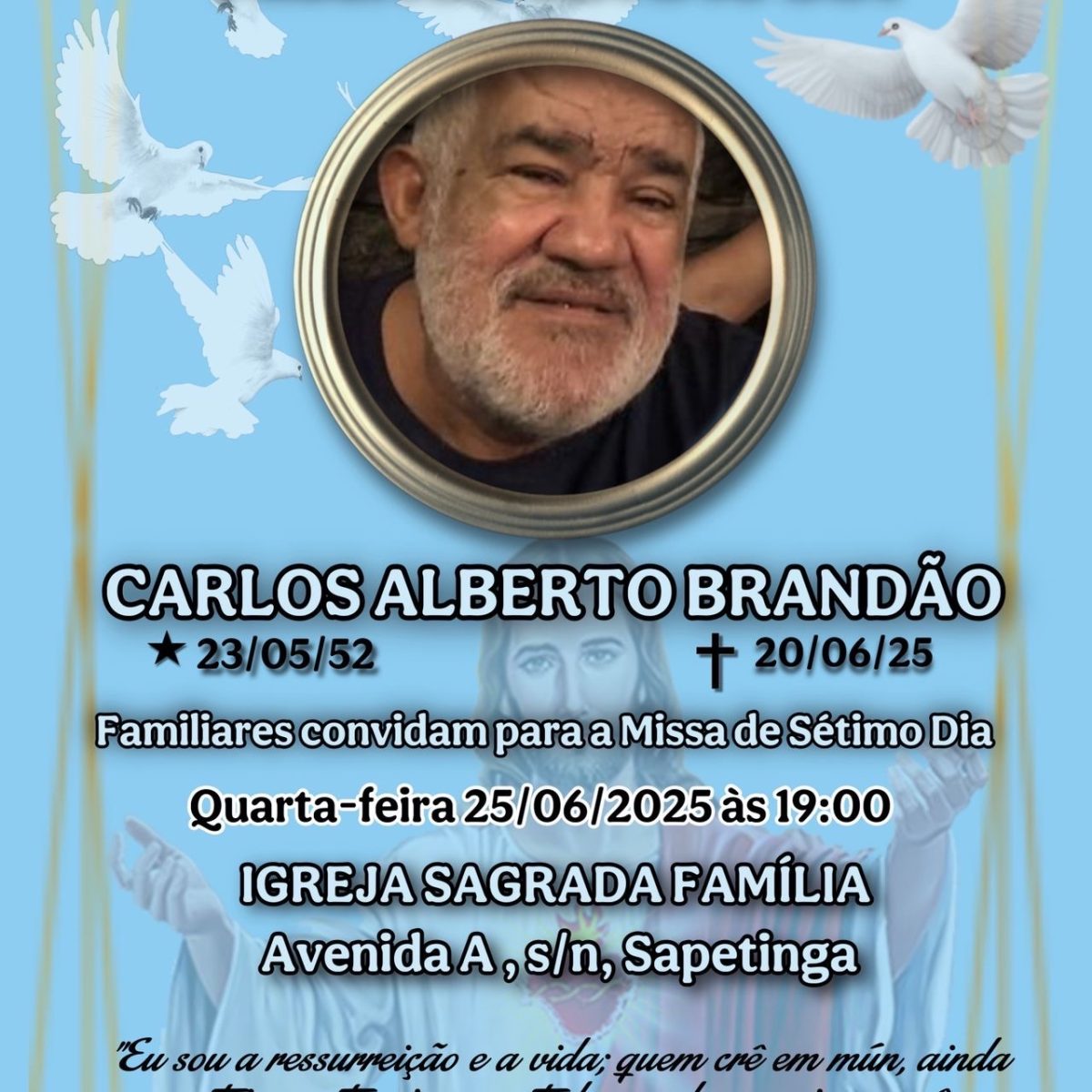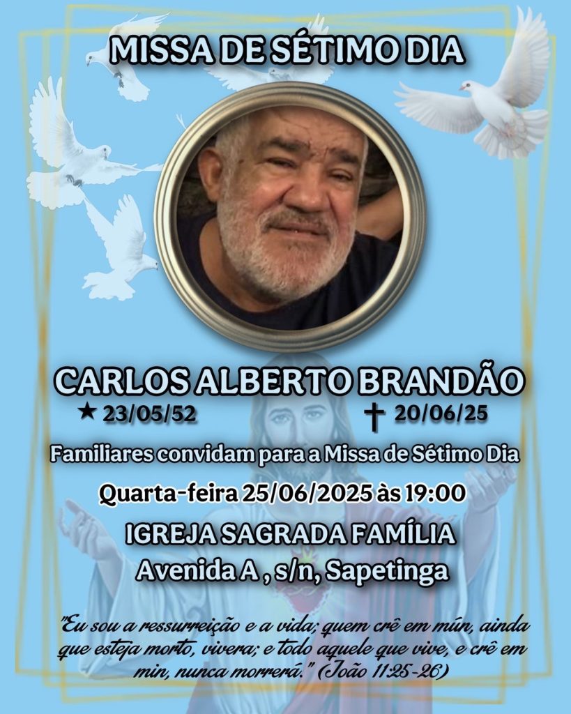 Seu Carlão, como era popularmente conhecido pelo pontal e na cidade ilhéus, terá uma missa em sua memória no dia 25 de Junho às 19 horas na paróquia Sagrado Coração de Jesus no bairro Sapetinga.
