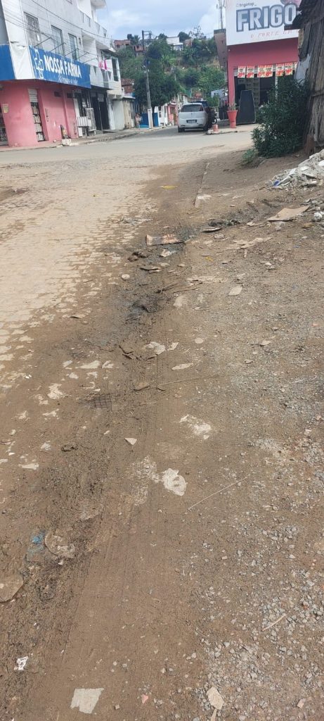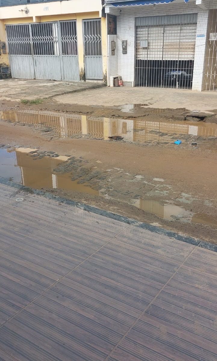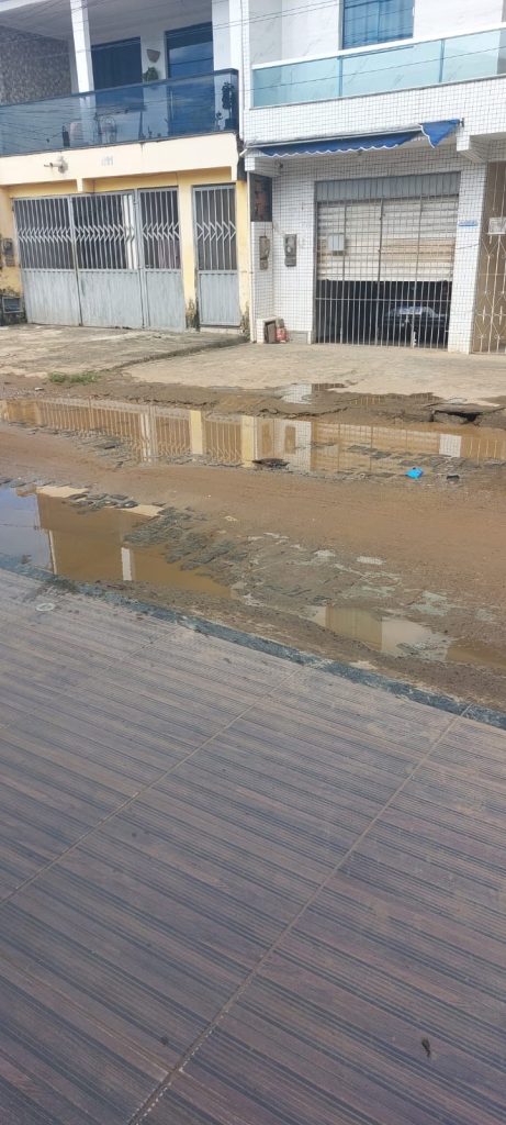 De acordo com a denunciante, as ruas estão repletas de buracos, lama e esgotos a céu aberto, criando um ambiente insalubre e perigoso para a população. Ela destaca que a situação afeta praticamente todo o bairro, inclusive a Rua 15 de Agosto, considerada uma das principais vias da região.