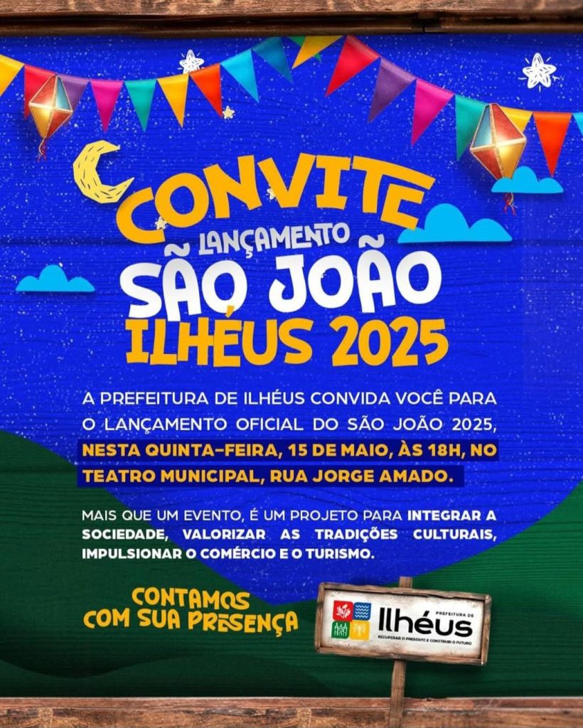 Nesta quinta-feira dia 15 de Maio, às 18H no Teatro Municipal, Rua Jorge Amado. O evento busca valorizar a cultura local e trazer a população para perto dos festejos tradicionais da cidade, com interação e fomento à cultura, turismo e comércio.