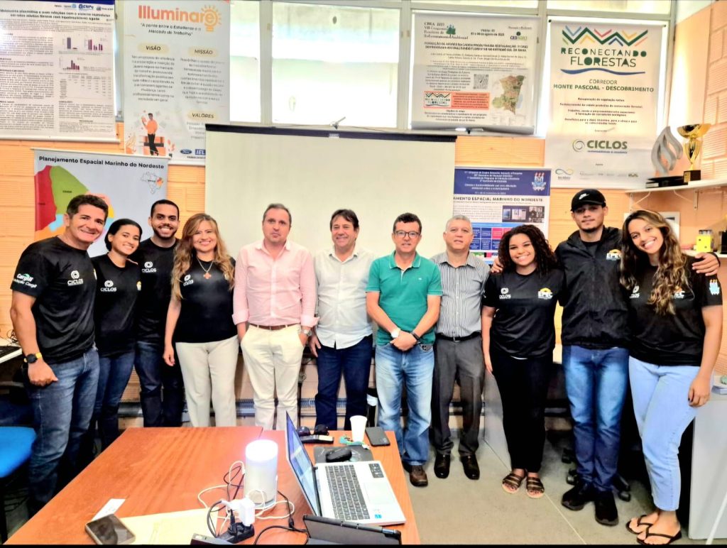 Os professores João Carlos de Pádua Andrade, Zina Caceres Benavides, Sócrates Jacobo Moquete Gusmán e Carlos Eduardo Iwai Drummond, junto aos estudantes de doutorado e de mestrado, representaram a UESC na reunião, que abordou, entre outros assuntos, os resultados positivos de ações de extensão desenvolvidas pela universidade no município, a exemplo do distrito de Maria Jape, onde projetos de empreendedorismo têm feito a diferença.