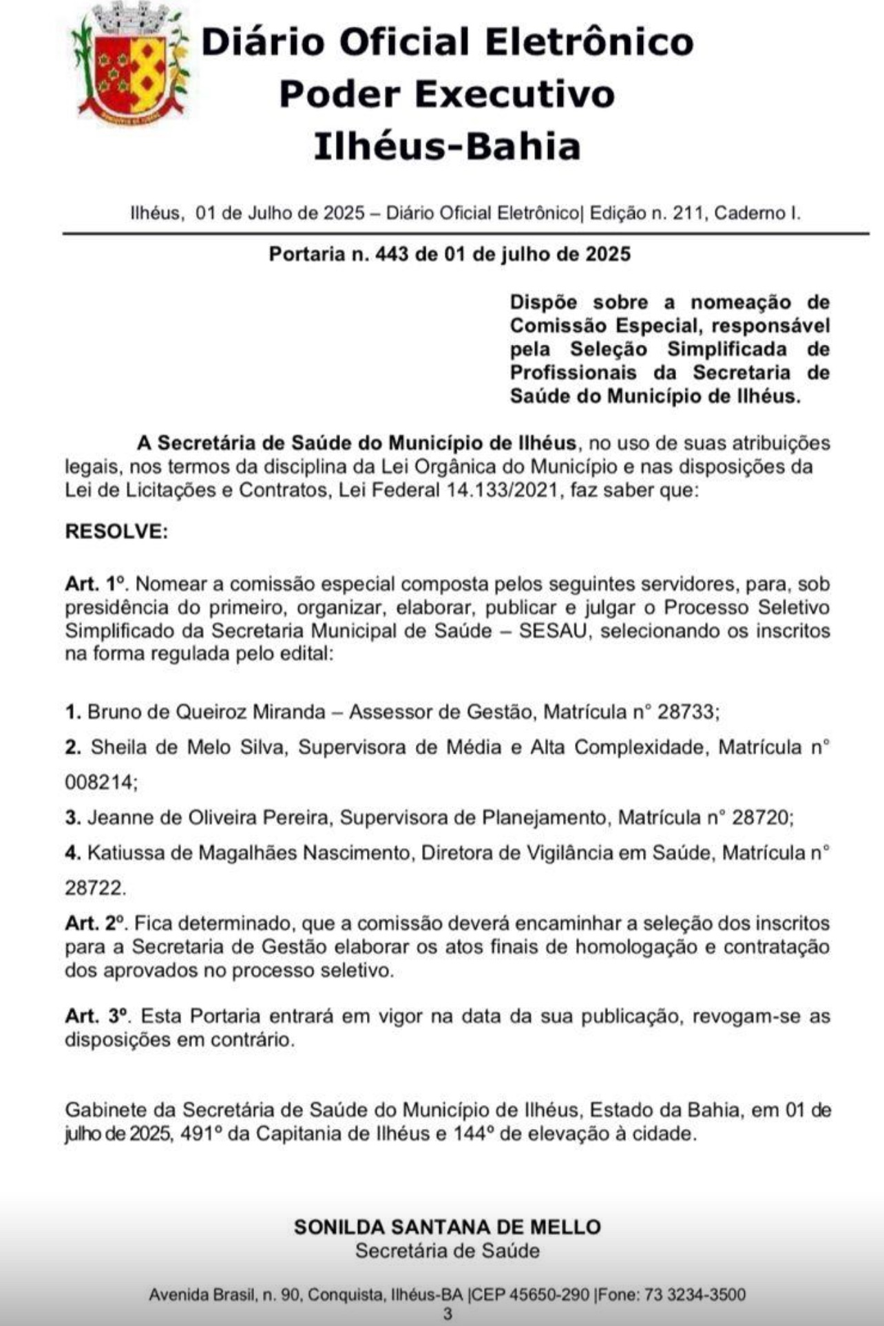📍 Ilhéus, 2 de julho de 2025 – Um cidadão atento fez a pergunta, e a resposta veio com precisão. No dia 1º de julho, nosso blog recebeu a solicitação de um seguidor que buscava esclarecimentos sobre o Processo Seletivo Simplificado da Secretaria Municipal de Saúde, prometido anteriormente para o mês de junho.