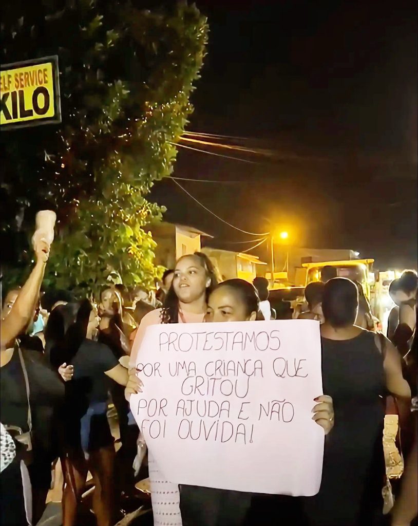 🪧 “Protestamos por uma criança que gritou pedindo ajuda e não foi ouvida.”